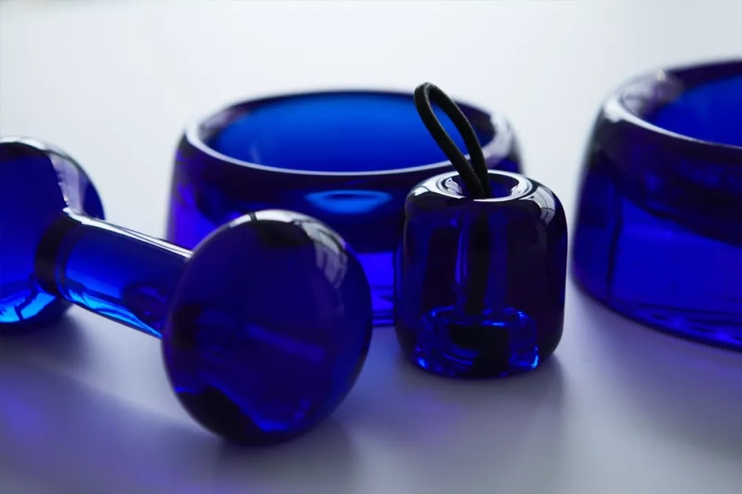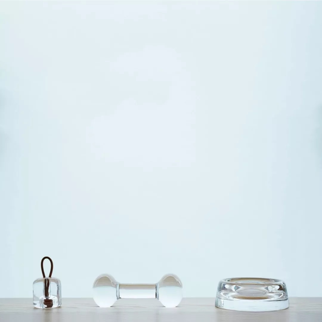 温柔的玻璃,镇纸有三种变体:一只盘子,一只哑铃,还有一根绳子。重量有两种颜色变化,清晰和深蓝色。